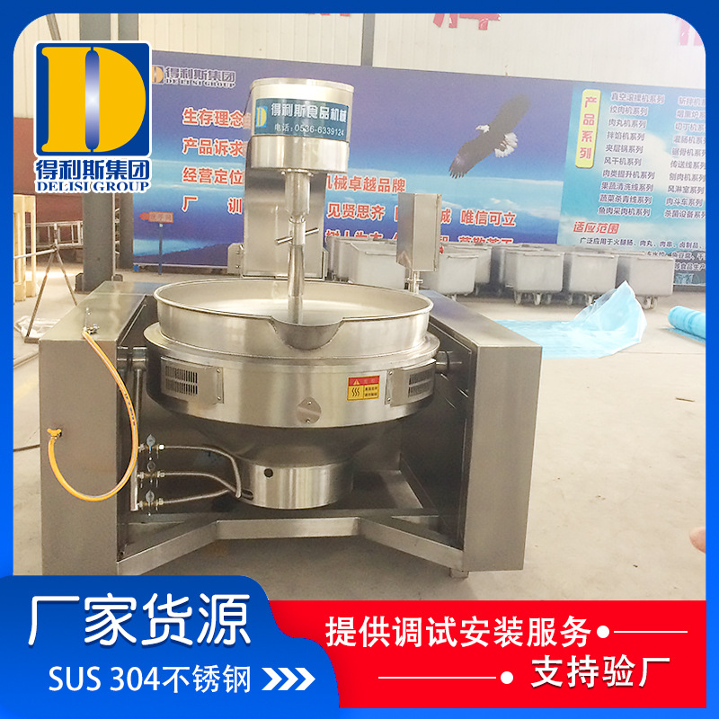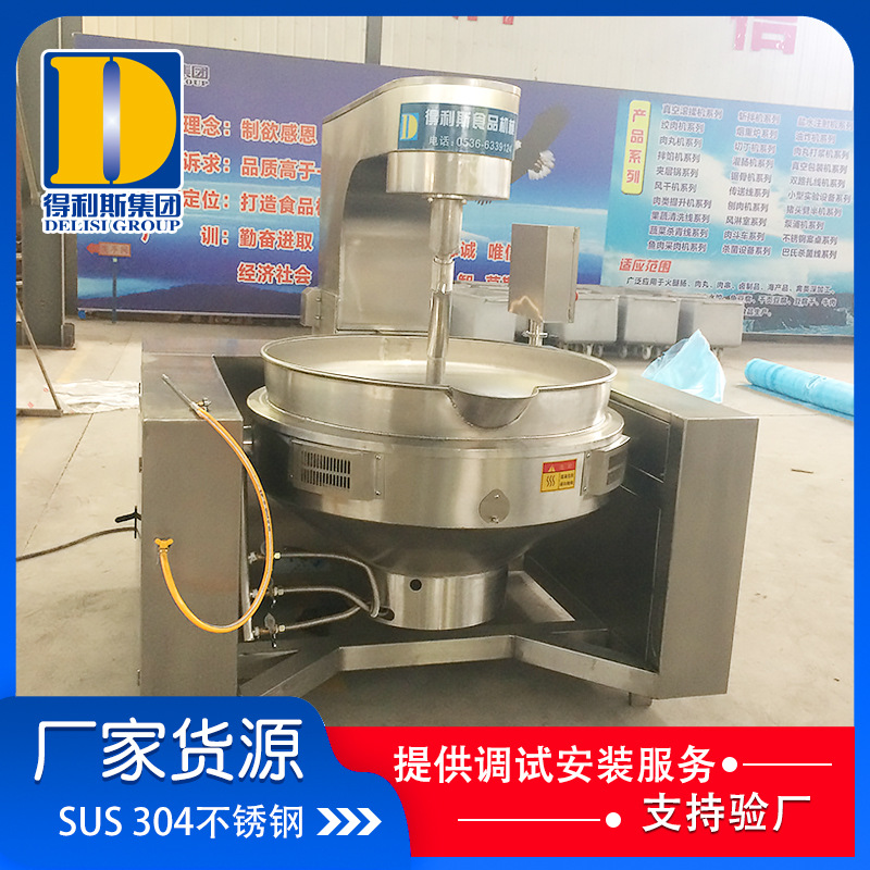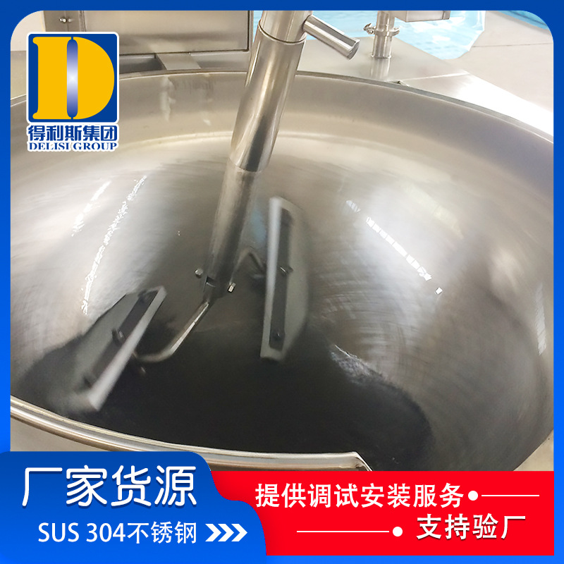熬制鍋因為它的優點就是攪拌方式模仿人工攪拌,能把鍋底的食物翻到上面來,而且攪拌速度可以自動調節,鍋膽受熱均勻,溫度可以自動調節控制,不易糊鍋,鍋底采用液壓式翻臂,自動將鍋體傾斜翻鍋出料,從翻炒到出鍋全程自動,節省人工。