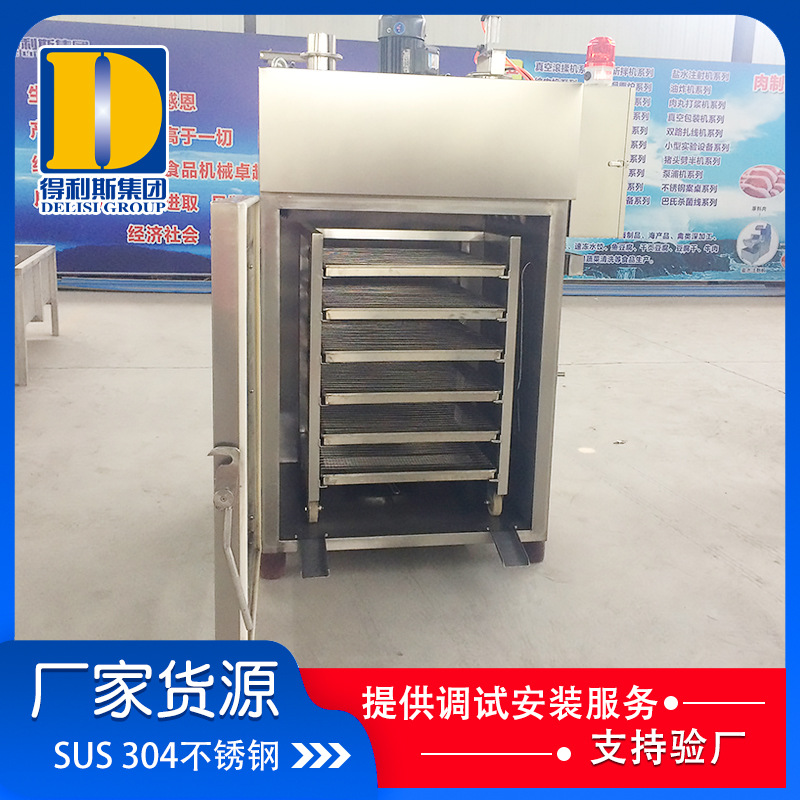 全自動煙熏爐的發煙系統: 外置式木粒、木屑發煙系統,不僅使產品產生果木香氣,而且可以使產品熏成由淺入深的金黃色。外置全自動煙熏爐分體式糖爐發煙系統,可熏制傳統的中式產品,產生糖熏味道,并且顏色可以控制,深可以成為棗紅色。兩種發煙系統同時使用能產生煙熏香氣和顏色。門上木粒發煙系統,采用世界上先 進的內循環發煙工藝,低氧狀態發煙,縮短煙道長度,降低能耗,減少設備占地面積。材質、保溫 箱體結構以單車為單元,可以拼裝成不同的組合。材質采用進口SUS304不銹鋼拉絲扳。保溫層采用進口聚氨酯保溫材料,耐高溫一次成型,保溫性能好。控制元器件 PLC、人機界面、電磁閥等關鍵元器件采用進口產品。加熱方式 采用外接蒸汽加熱或電加熱方式。配備在線清洗系統。門鎖和門合頁及密封條設計合理,密封嚴密,操作方便。生熟區門互鎖,區域隔離,符合HACCP要求。